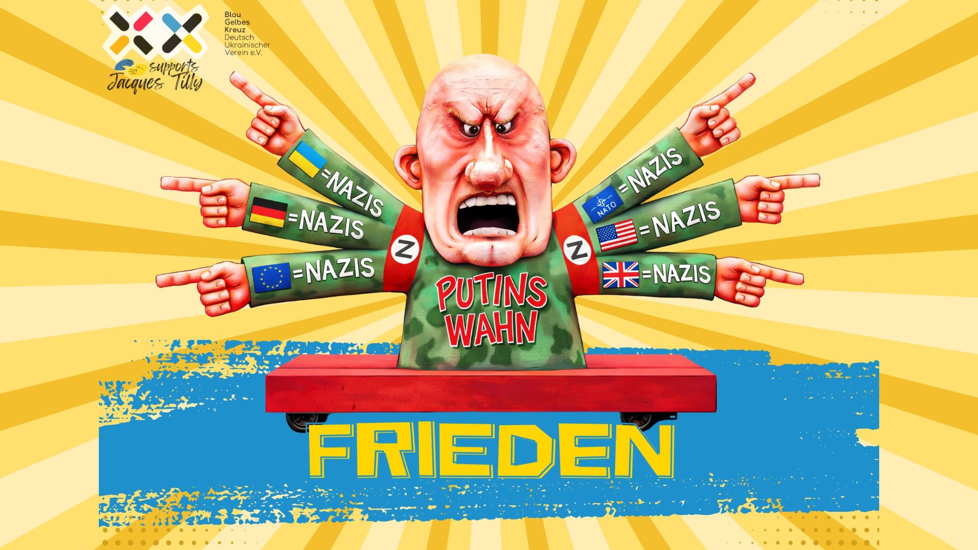 Jacques Tillys weltbekannte Rosenmontagswagen stehen für bissige Satire und gelebte Meinungsfreiheit. Nach Drohungen aus Moskau zeigt das Blau-Gelbe Kreuz Solidarität – und setzt gemeinsam mit den Karnevalskomitees in Düsseldorf und Köln ein klares Zeichen: Humor und Freiheit lassen sich nicht einschüchtern. 🎭
